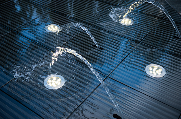 水本無形,它的物理特性讓它能輕易地跟隨容器而呈現不同的面貌。獨特的延展性使得水能呈現無以計數的不同效果。燈光的布置,介質的紋理,顏色和動態都能給水帶來無窮的變化